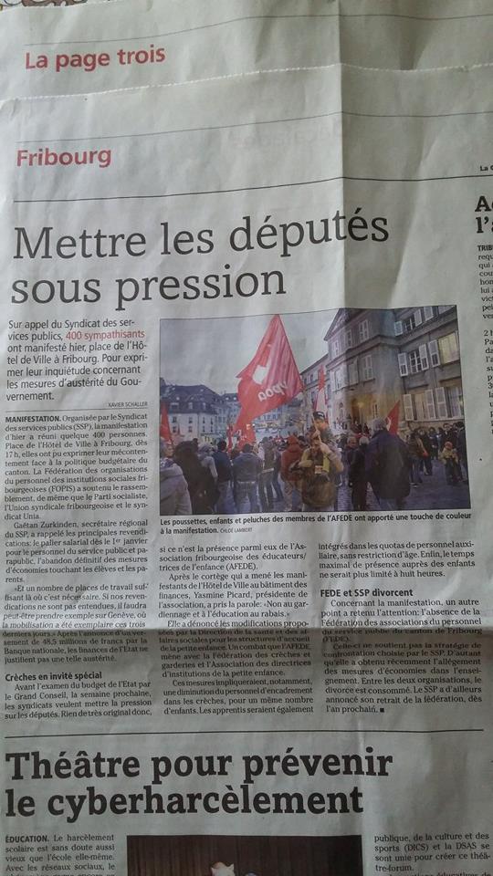 La Télé (en direct de la manifestation)La Télé (manifestation)La Liberté (manifestation)Ssp région Fribourg (facebook)Non aux coupes salariales (facebook)Article de La Gruyère du 14.11.15